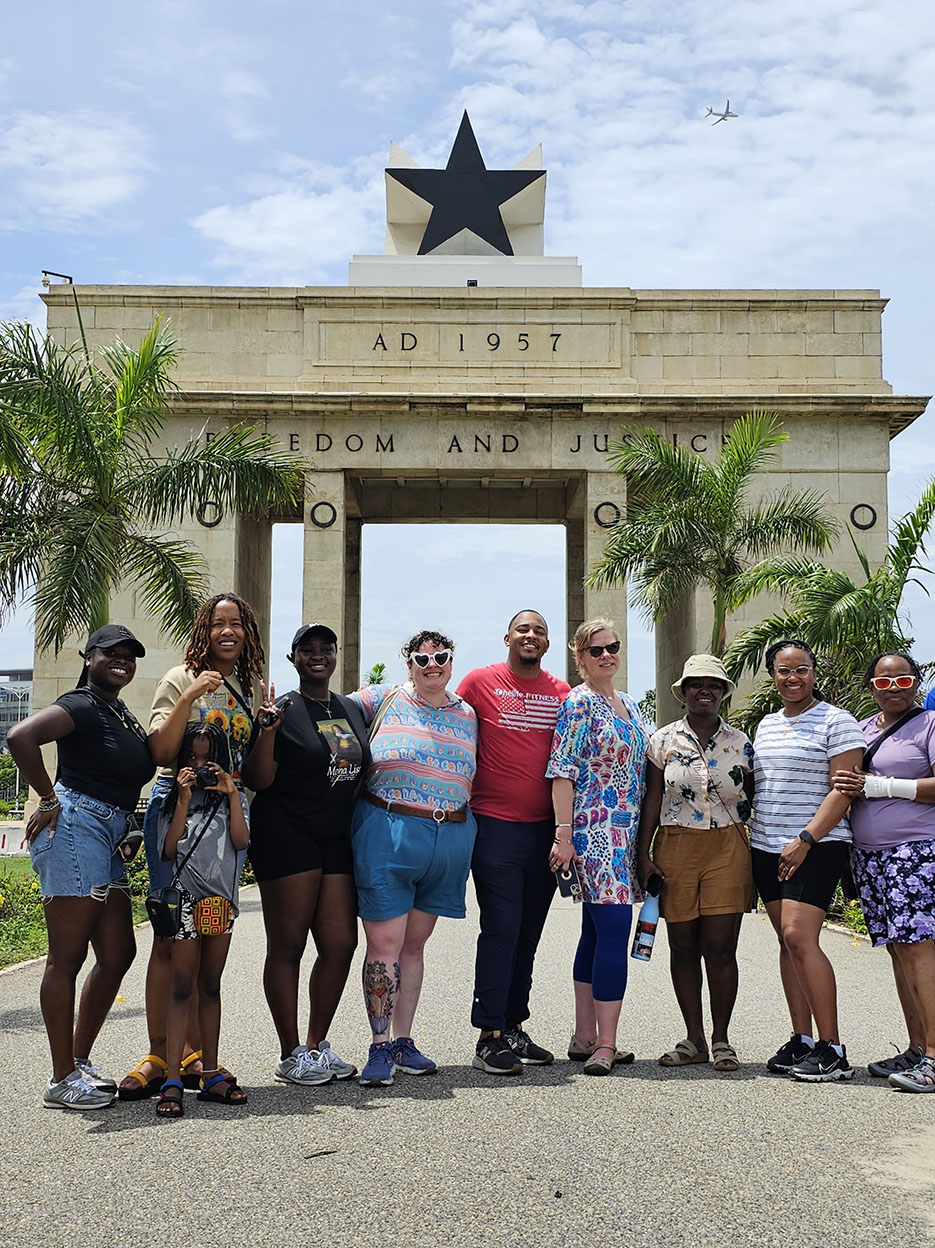 Nicole Corley, Ph.D., social work associate professor, leads Exploring Ghana Through the Lens of Art, Identity, and Social Justice during summer break in June.